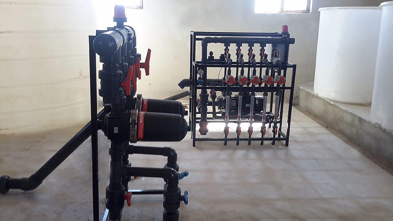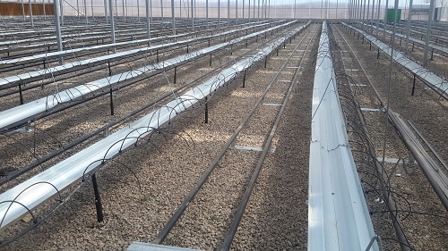 طراحی سازه گلخانه بر اساس استاندارد اسپانیا میباشد که ستون ها از قوطی 80 در 80 به ارتفاع 4.5متر و ارتفاع تاج 6.10 المان شبکه کمان از نوع مرکب میباشد ودر سیستم سرمایش گلخانه از فن و پد استفاده شده است و پوشش دیواره از جنس پلی کربنات دو جداره و سقف پلاستیک یو وی دار میباشد. گلخانه مجهز به سیستم پرده ذخیره انرژی میباشد که در تابستان برای جلوگیری از تابش زیاد نور خورشید و در زمستان از اتلاف هوای گرم داخل گلخانه جلوگیری میکند.بستر کشت از نوع گلدان به همراه کوکوپیت و پرلیت میباشدو آب رسانی به هر گلدان با سیستم دریپر و لوله ماکارونی انجام میشود.سیستم اتوماسیون گلخانه قابلیت اتصال به مود اتوماتیک و لوکال را بر اساس برنامه نویسی pcs7 را دارد که تمامی فرامین کنترل بر اساس نوع کشت و زمان کشت از طریق اتوماسیون انجام پذیر است همچنین آبیاری گلخانه توسط سیستگ اتوماسیون صنعتی قابل انجام است و سیستم آبیاری بر اساس استاندارد دستگاه های آبیاری cepex اسپانیا میباشد که از پنچ استوک تشکیل شده است که 4 استوک کد اختصاص دارد و یک استوک به اسید عملیات دوزینگ داده و با توجه به برنامه داده شده به صورت اتوماسیون صورت میگیرد و به سمت گلخانه پمپاژ میشود و در نهایت از طریق دریپر و لوله ماکارونی محلول ساخته شده به سمت ریشه گیاه هدایت میشود.